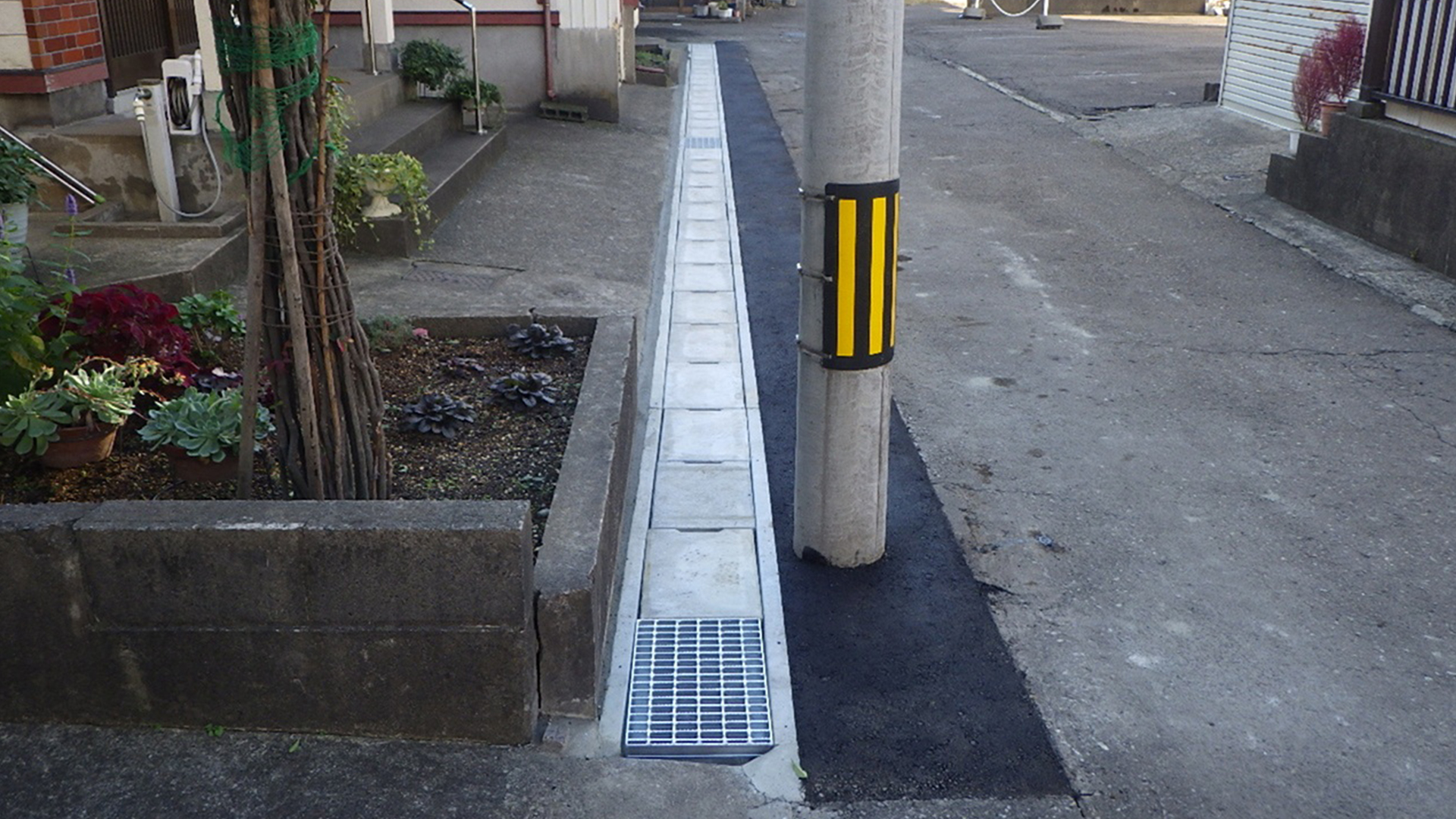 道路や敷地のわきに側溝を新設または改修し、雨水や生活排水を適切に排水するための工事を行っています。