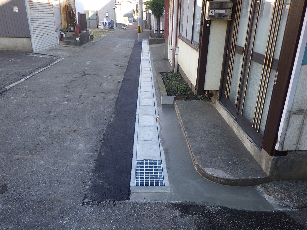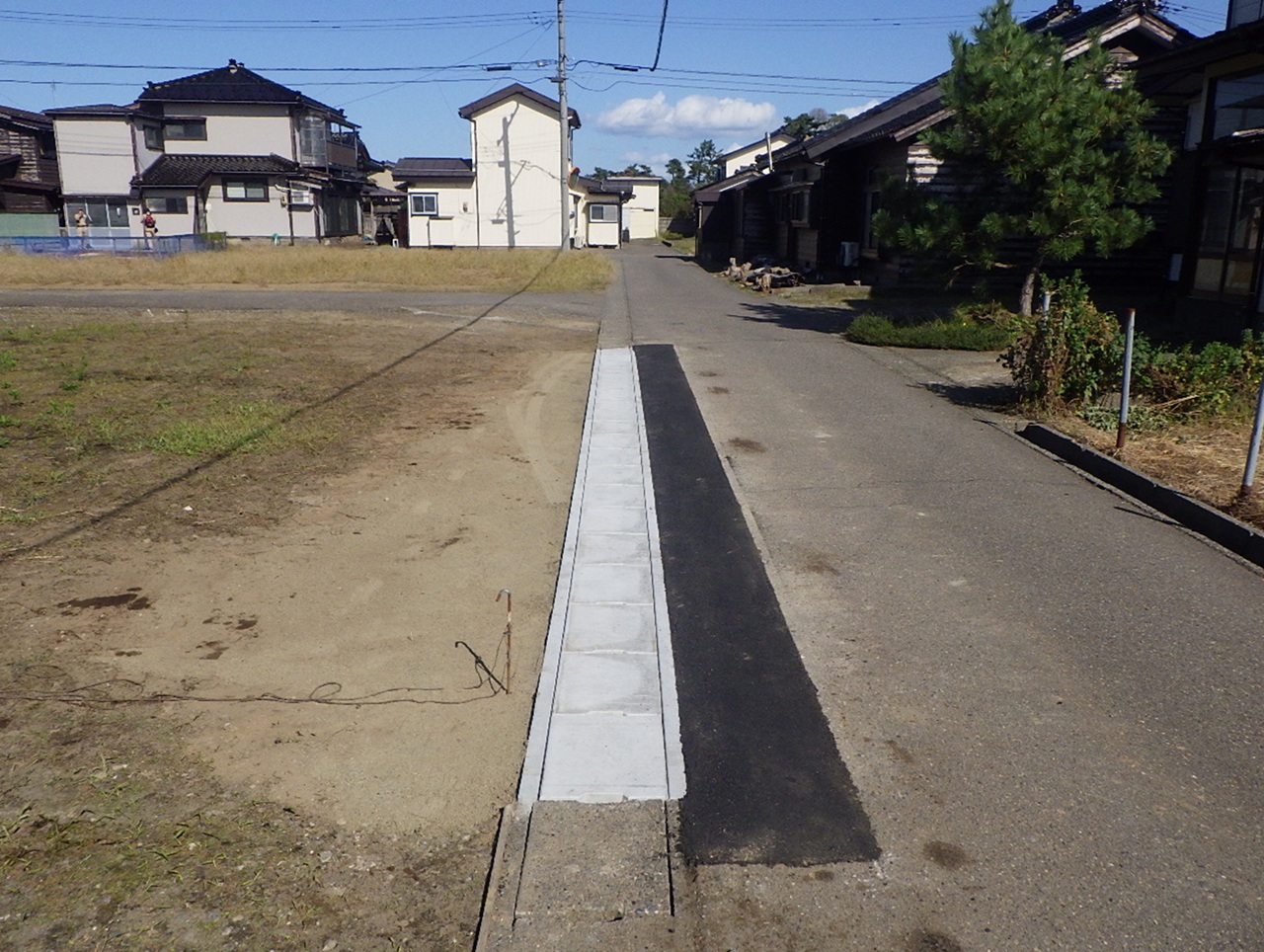 道路や敷地のわきに側溝を新設または改修し、雨水や生活排水を適切に排水するための工事を行っています。